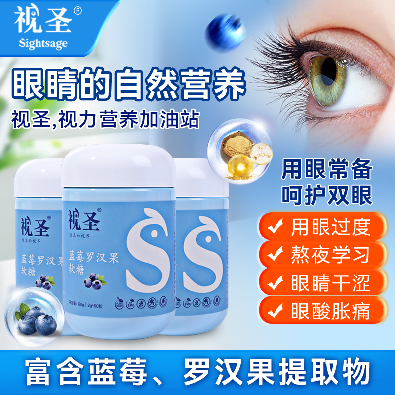 呵护眼睛的自然营养—蓝莓软糖 60粒/瓶 视力营养加油站
